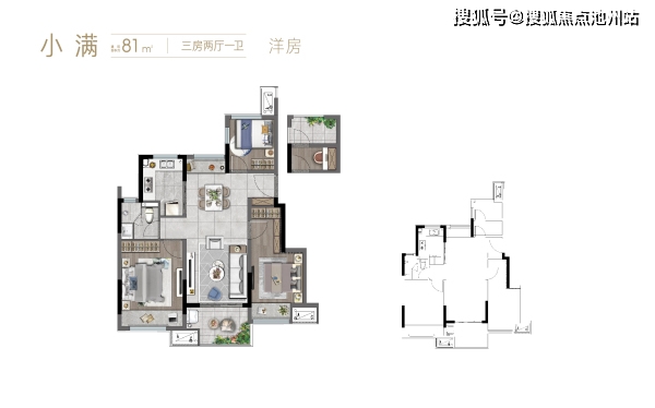 住宅【面积户型】:1#2#3#6#9#为81㎡户型,(三房二厅一卫)