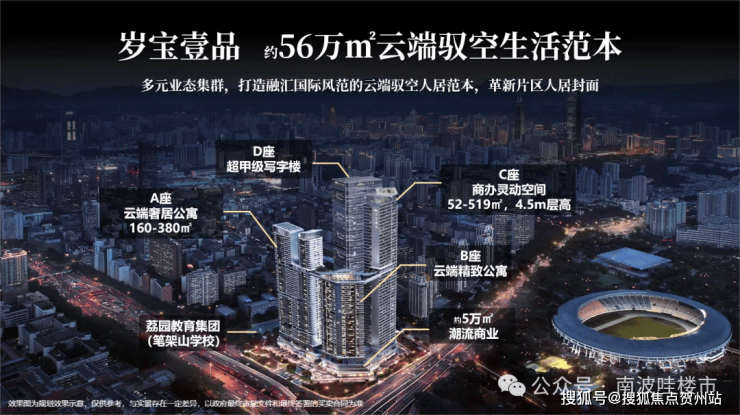 岁宝壹品位于八卦岭片区的“C位”,项目分为两期开发,总建筑面积超50万㎡,汇集包含超甲级写字楼、(建筑面积约)5万㎡高端商业与顶级公寓等多种业态,打造为融汇国际风范的云端都会垂直生活体,全方位配套,满足不同商务场景的即刻切换。尤其令人期待的是,150米高空的 (建筑面积约)6000㎡云端会客厅,配置健身房、无边际泳池、观景露台等圈层私享会所,在深圳实属罕见。