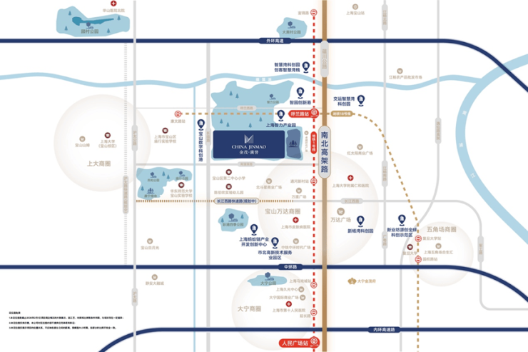 作为金茂上海 “满系” 首作,金茂满誉落子宝山庙行板块 —— 这里既是宝山 “科创中心主阵地” 的核心承载区,更是中外环间难得的价值高地,集稀缺区位、宜居底蕴、全维配套于一体,让生活在此圆满落地。