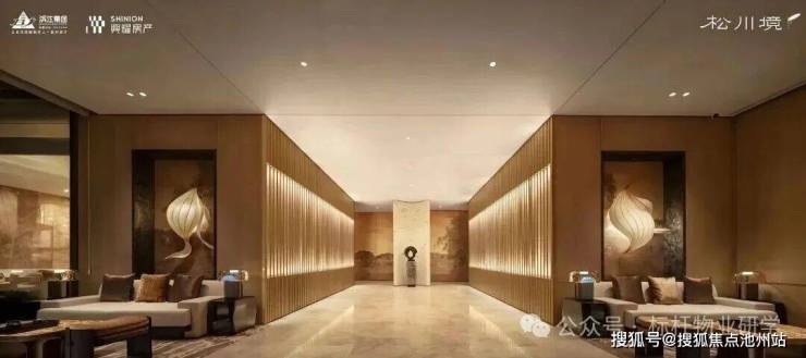 大门徐徐开启,步入序厅,眼前豁然展现《松阁观潮图》所蕴含的“动静相依”东方美学意境。定制套石的龙粼照壁在波光粼粼中熠熠生辉,构筑起松川境独有的文化印记与精神象征。松之静谧与潮之壮阔在此完美融合,每一步都隔绝了门外的喧嚣,实现了从纷繁世界到宁静家园的优雅过渡。