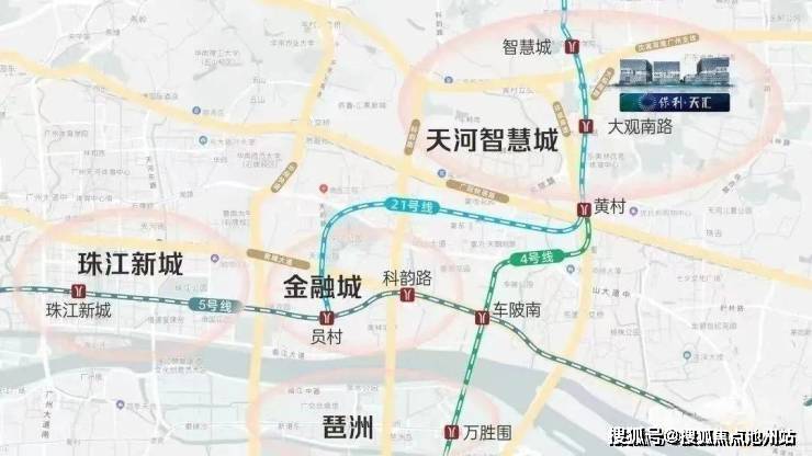 项目距离21号线大观南路站约1.2公里,步行大概需要15分钟,建议买个小电车接驳,一站换乘4号线去往金融城、琶洲,4站到员村换乘5号线直抵珠江新城。