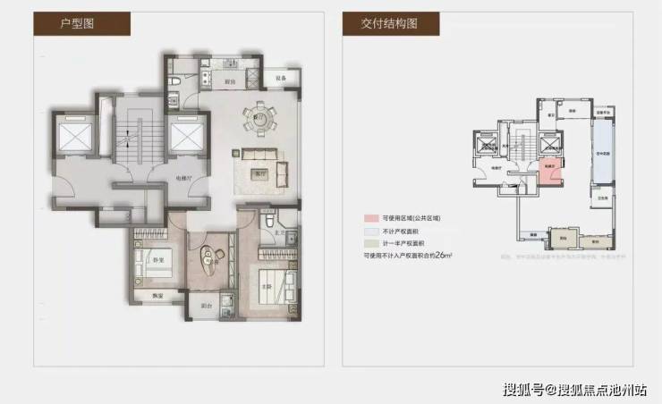 4. 得房率高,凭借新规政策,新建筑面积约100平户型实现了老规建筑面积约120平户型才有的空间尺度;