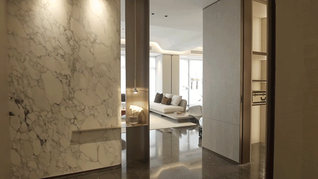 古奇黑、芬迪白、古堡灰、鱼肚灰、孔雀开屏等奢石的运用,每一块都是全球甄选的珍稀石材原料,自带豪奢高级气质,为空间增添无尽的美感与价值。