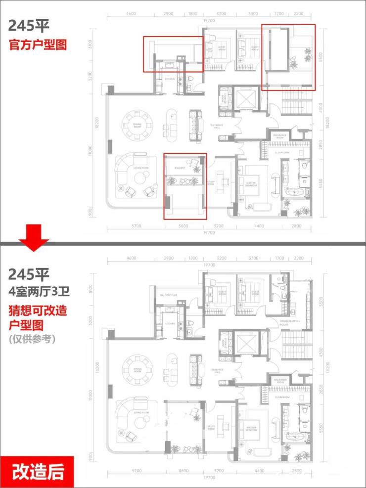 2、豪改户型,客餐厅、主卧空间非常豪华。