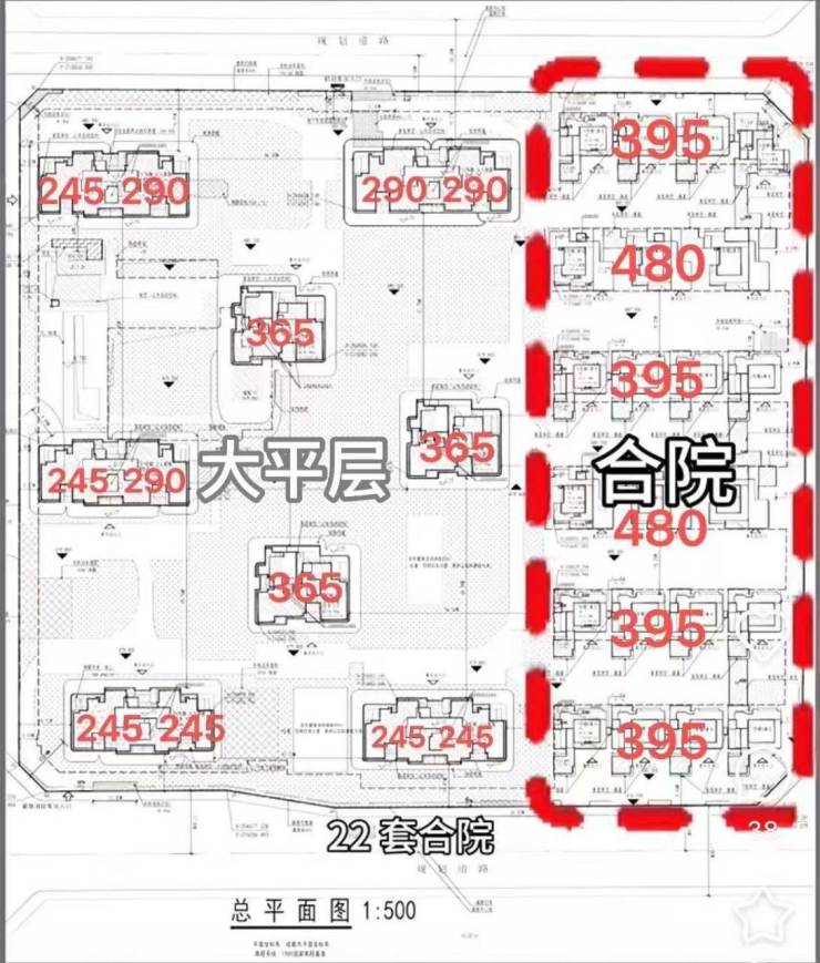 位于东侧的合院则是396㎡,489㎡两种产品,实得超过1000㎡