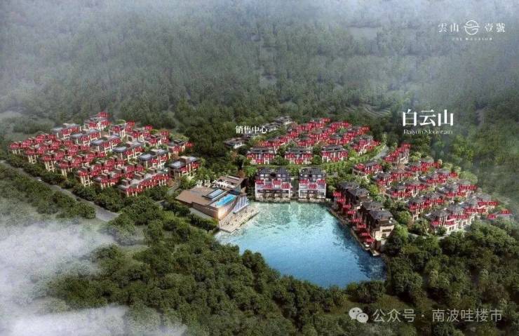 联排有两种,靠山的建面约266-306㎡和临湖的367-392㎡,均在售中。