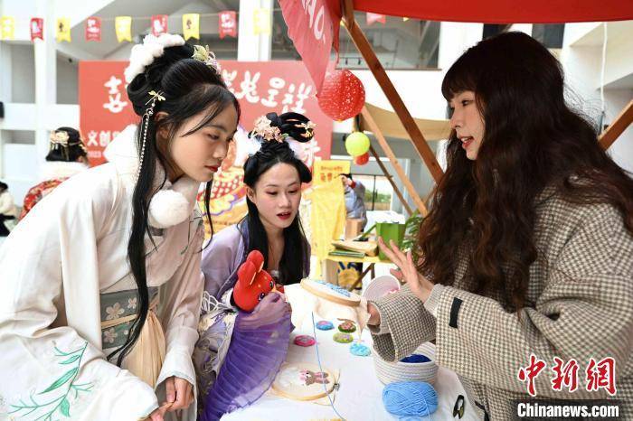 “我也学学,用毛线来刺绣,还真有点意思。”前来“赶集”的服装设计师何宇晴忍不住上前要体验一把。“这里的集市很不一样,不仅可以体验民俗活动,还能让我穿上心爱的汉服美美地拍照打卡,希望以后可以多多举办。”何宇晴告诉记者,她会经常去不同的集市打卡,特别偏爱这种体验式的创意集市。