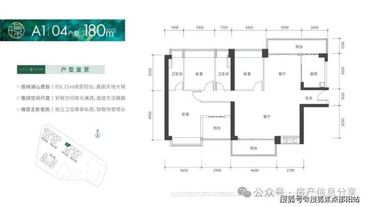 180㎡的4房2厅2卫,折后总价1020-1114万/套,单价5.7-6.18万/㎡。
