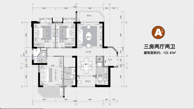 A户型:122.87㎡|三房两厅两卫