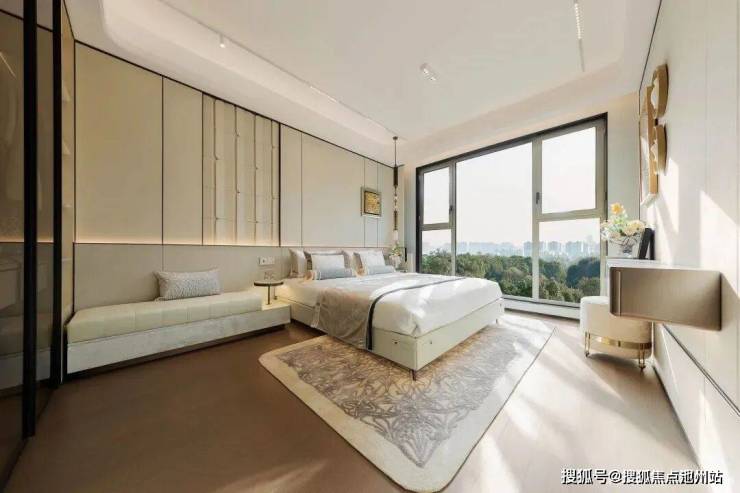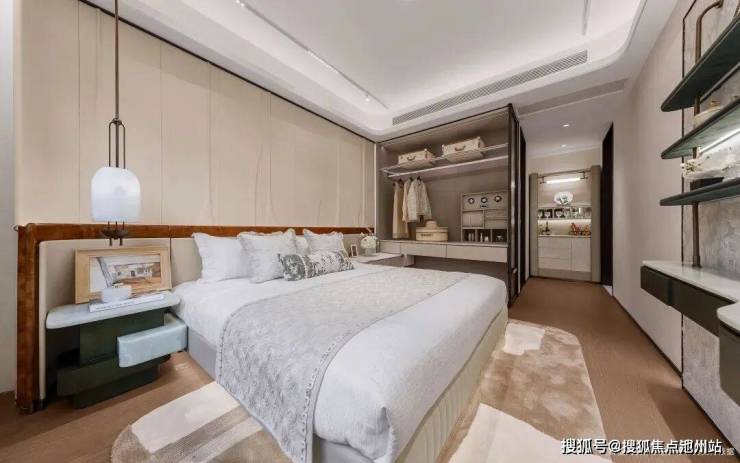 豪华主卧采用约4.65米超大净进深设计,空间感远超普通户型。室内巧妙配置转角更衣间,实现男女主人衣物分区收纳;小家化设计提升了居住的松弛与私密感。