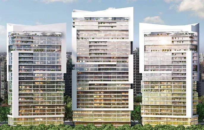 整个社区都是绿色森林,树海环抱,连底层都挑空6~9米,种植绿色,让每户人家都能“开窗见树”,让房子生长在森林之上。