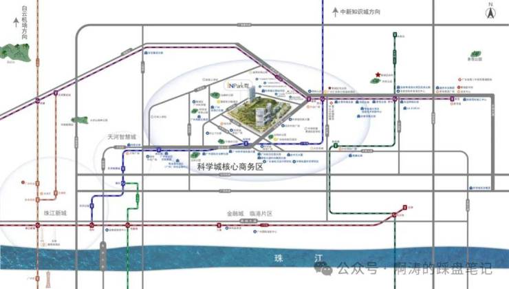 主干道:项目依托开创大道、科学大道两大城市主轴,快速连接科珠路、广深路、二环高速等,约30分钟畅达广州各区,1小时内通达广佛深等城市,打造商务高效剧场;