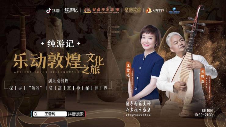 8月10日晚19:30,文旅直播节目《纯游记》联合@央视频,@王雪纯、@东方锦龙、@掌上敦煌等账号共创直播,开启“乐动敦煌奇妙夜”直播活动。本次活动采用“文旅交互+走播”的形式,亲临乐动敦煌,沉浸式探寻、讲解、展示“活的”莫高窟神秘世界,包括“茶楼相聚-开启乐动之旅”、“深度体验-观演《乐动敦煌》”、“逛雅集-聊敦煌文化里的乐与舞”、“夜游上元市集,打卡美食华灯”四个部分。敦煌市委书记石琳、《乐动敦煌》剧目导演张华特别出席。活动累计观看人数超102.8万人,超10万人参与直播讨论。