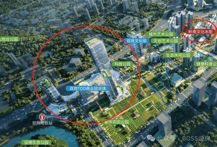 其中双岗站TOD为地铁上盖,楼下直通地铁,无需步行。