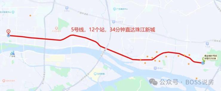 而5号线双沙站距首开的6号地块仅约50米,导航34分钟直达珠江新城;