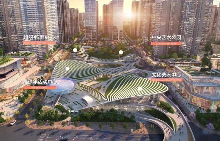 文化层面,项目规划「三馆一园」文化艺术新地标,以青少年活动中心、超级邻里中心、文化艺术中心和中央艺术公园组合式功能空间打造,构筑万博片区全新精神高地。