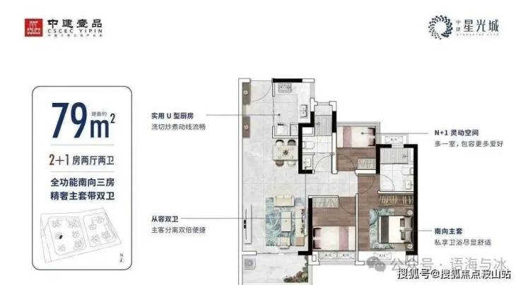 79㎡南向三房,主卧带独立卫生间,区域极高性价比