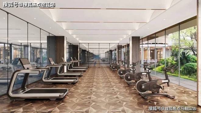 悦动健身房功能齐全,配置了跑步机、椭圆机、动感单车等设备,加上全落地镜的玻璃墙面,“运动与自然”合二为一。