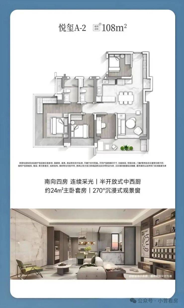 刚需家庭可以关注108㎡的四房户型,总价 600-670 万左右,进门有灵动空间可作为茶室或客卧,U 型厨房带岛台设计让烹饪动线更流畅,主卧的 270°U 型飘窗带来不错的采光和视野。