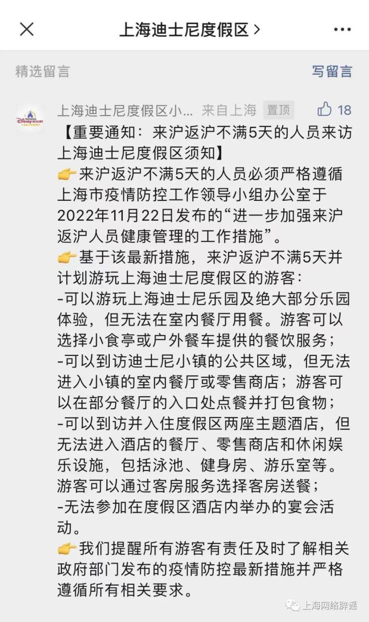 10月24日下午,上海迪士尼度假区通过官方微信表示,来沪返沪不满5天并计划游玩上海迪士尼度假区的游客可以游玩上海迪士尼乐园及绝大部分乐园体验,但无法进入室内餐饮空间。
