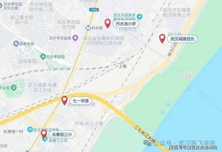 交通配套:距离地铁1号线(12号线)丹水池站直线距离约500米,由于铁路阻隔,步行约2公里;项目周边就是二七长江大桥、解放大道、江北快速路,但早晚高峰期会堵车。