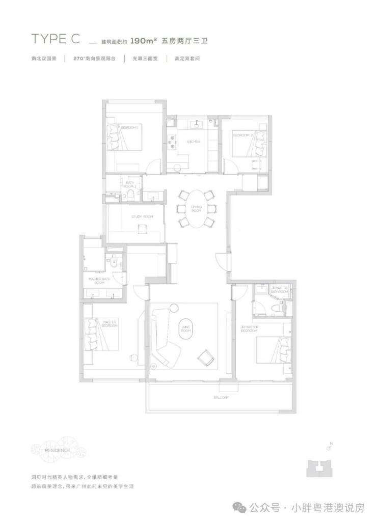 【190㎡户型】南北双园景-光幕三面宽-270度超广角观景视野-经典四叶草布局