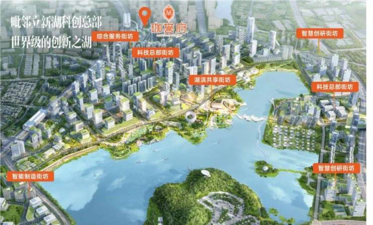 立新湖科创总部区规划面积约5平方公里,包含约1.2平方公里湖区,重点发展新一代信息技术产业和文化创意产业,这种都市型滨湖科创总部在大湾区可谓独具一格。