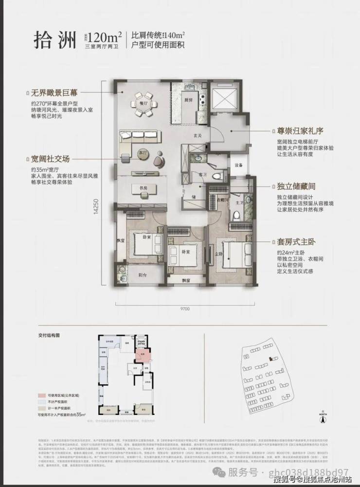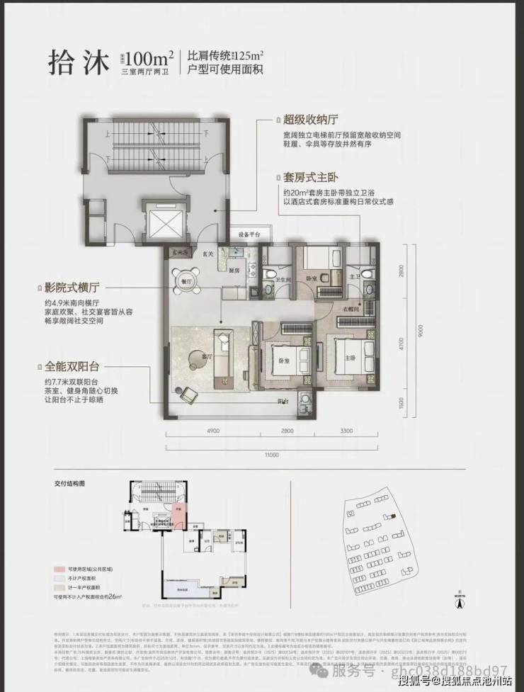 1.使用率近100%,比传统户型多出20%使用面积;