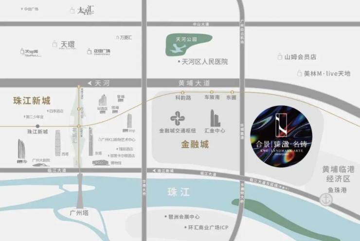 世界级交通枢纽,临江大道直达珠城:10分钟珠江新城,15分钟琶洲,金融城TOD(全国最大地下空间),15分钟南站,20分钟白云机场。
