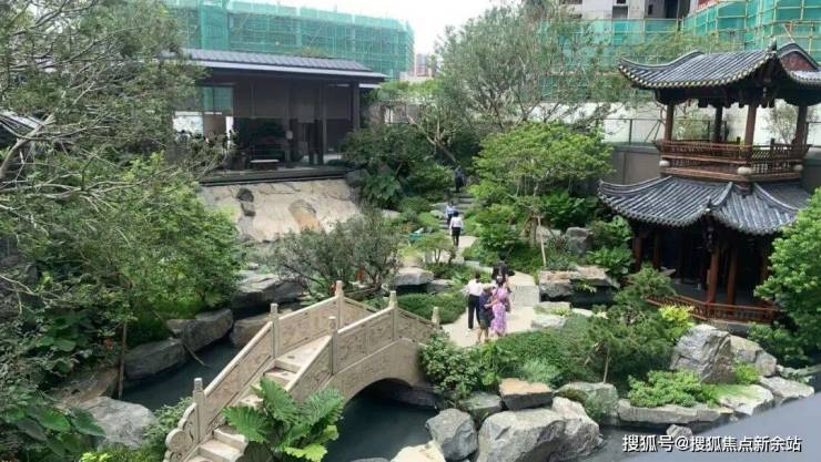 新中式的小区园林很是赏心悦目;古色古香很有韵味,虽然只是园林的部分,也能想象到未来整体园林的风格;