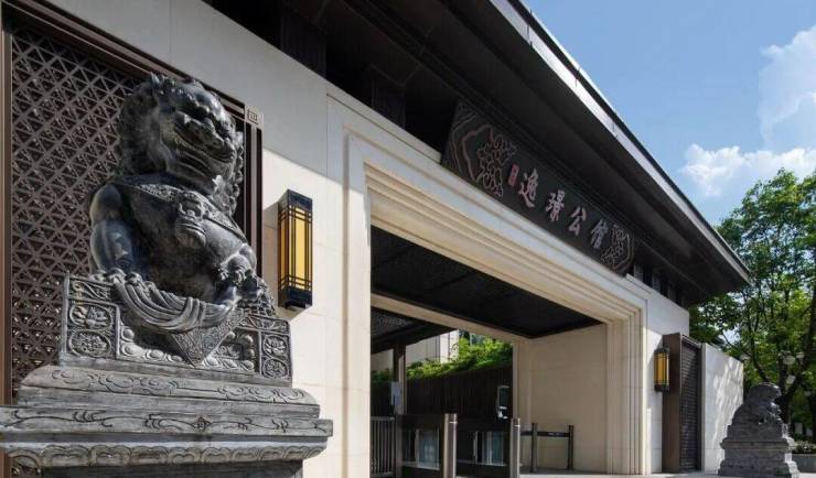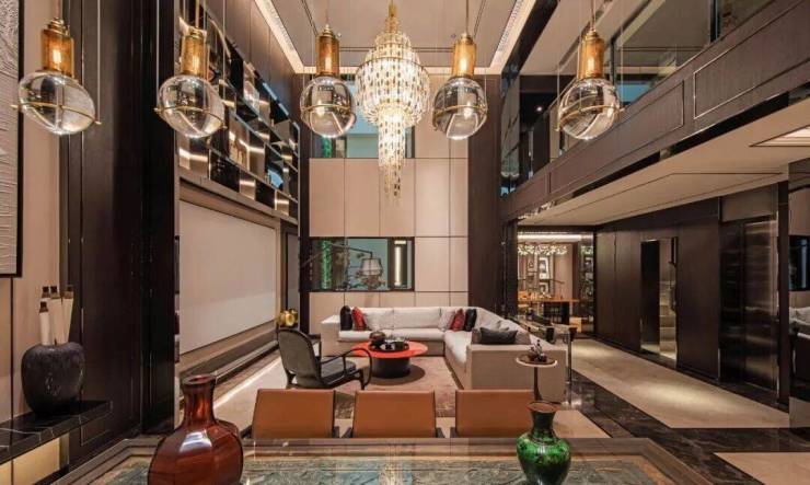 项目取法皇家院落规制,通过威仪府门、镇宅石狮、尊荣门匾、名园造景等方式,将传世家族的威仪展现得淋漓尽致。一府宅门,252颗铜制鎏金“浮沤钉”,开阖磅礴气势;镇宅石狮,采用法国金花干挂天然石材,重达上吨,器宇轩昂;德系品牌 SCHUECO 系统门窗,双层中空 LOW-E 玻璃,营造丰盈与外、安静于内的家族生活。