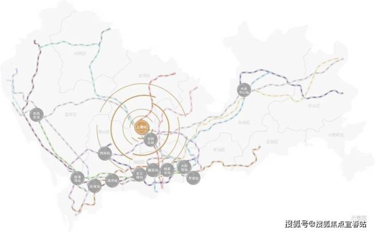 ②深圳都会枢纽的1/13 ,三地铁线交汇(含在建)