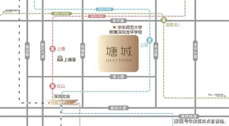 项目近达4号线上塘站、6号线上芬站、33号线龙胜站(在建中)三大地铁轨道,2站深圳北站,3站宝安国际机场。