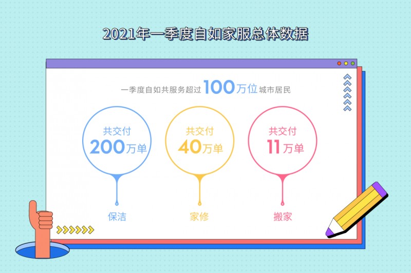 近日,自如研究院发布《2021Q1长租服务发展报告》(下称“报告”)。报告显示,一季度自如家服共交付200万单保洁、40万单家修、11万单搬家服务,服务超过100万位城市居民,这些人群中既包括自如租客,也包括广泛的服务市场用户。