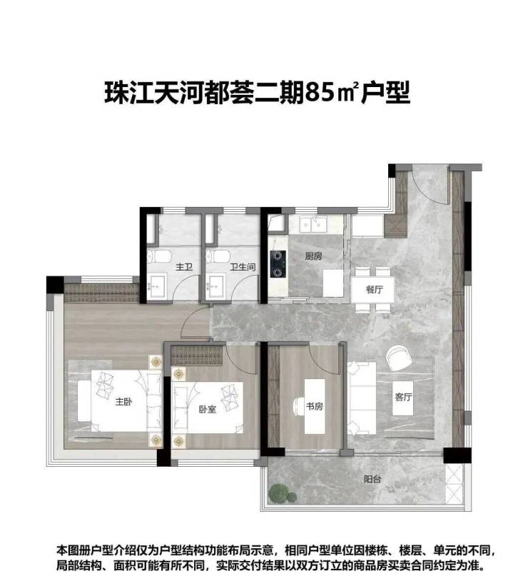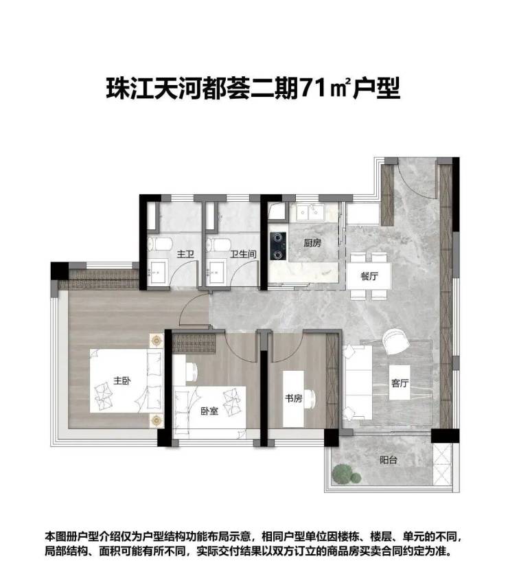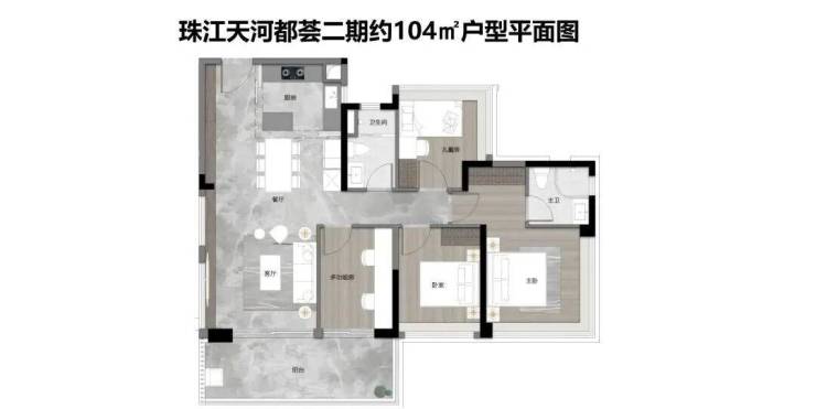 约71㎡ 3空间2卫,天河罕见户型,生活起居更从容