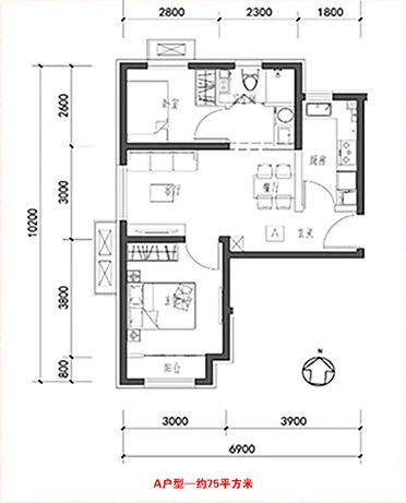 75平米两居 首付70万左右