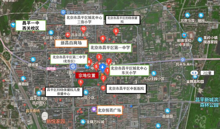 附近较大的医院有北京市昌平区医院、昌平京北新世纪中医医院等;周边教育资源有昌平区城北中心东关小学、昌平区第二中学(北校区)、昌平区排名前列中学等学校。注:最终学校以教委划片为准