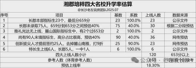 2022年湘郡培粹转为公办之后,生源发生重大变化,100%微机派位,但是2025年湘郡四大率仍然达到18-20%左右,稳居长沙第一梯队,可见其加工能力之强。