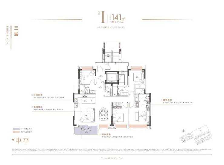 建面约133㎡4房: