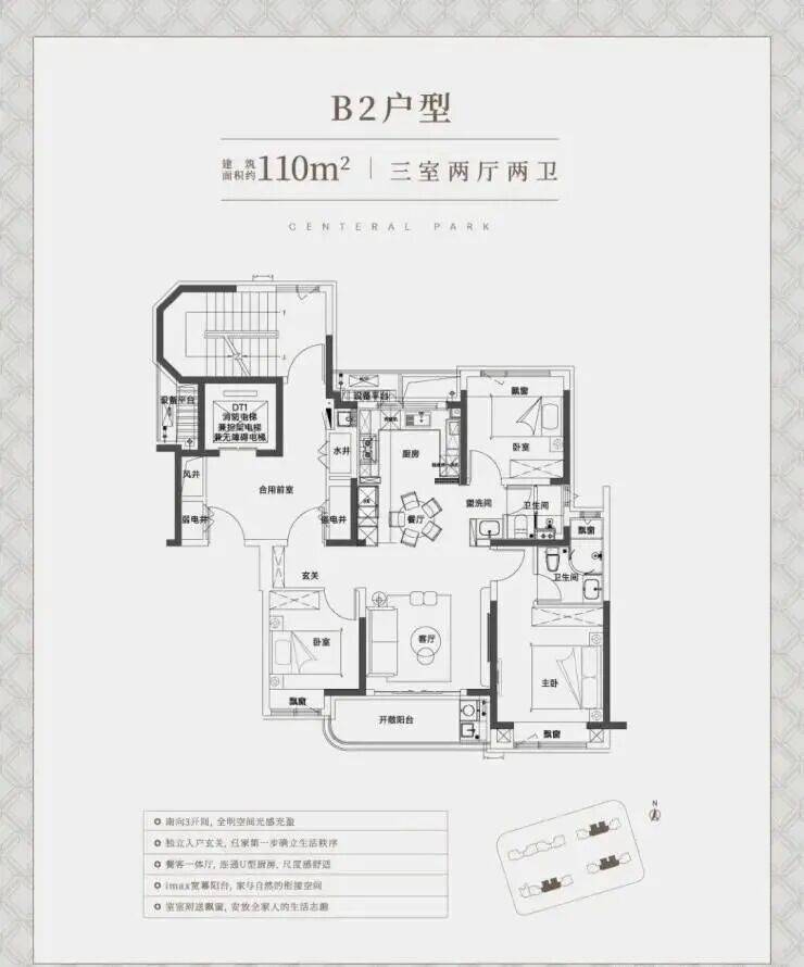 关于中环铂樾的户型,遵循“好房子”的舒适标准,强调户型方正、南北通透、动静分区、干湿分离等核心优势,每一个户型都极具竞争优势。