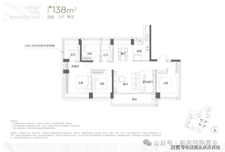 建面约110㎡改善四房 容纳一家人的幸福安康