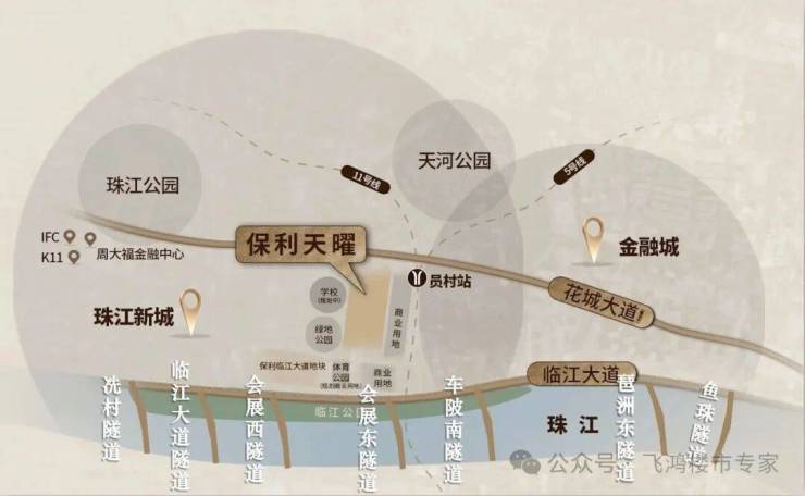 保利天曜坐落于广州珠江新城东、珠江以北的城市核心-1,地处“珠江新城-金融城-琶洲”黄金三角区的几何中心,这一位置堪称广州现代城市建设的“心脏地带”。