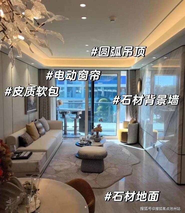 其次,室内精装标准高奢。餐客厅地面、背景墙均为大理石材质,在电器选配、厨卫品牌、收纳储藏、设计美感等方面也都做了全维升级。