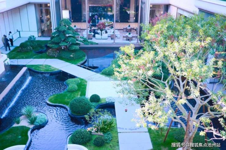 园林景观,则是沿用滨江经典度假风,包括蓝宝石戏水池、高大棕榈树,以及景观跌水、艺术橱窗等设计,营造出热带滨海度假氛围感。