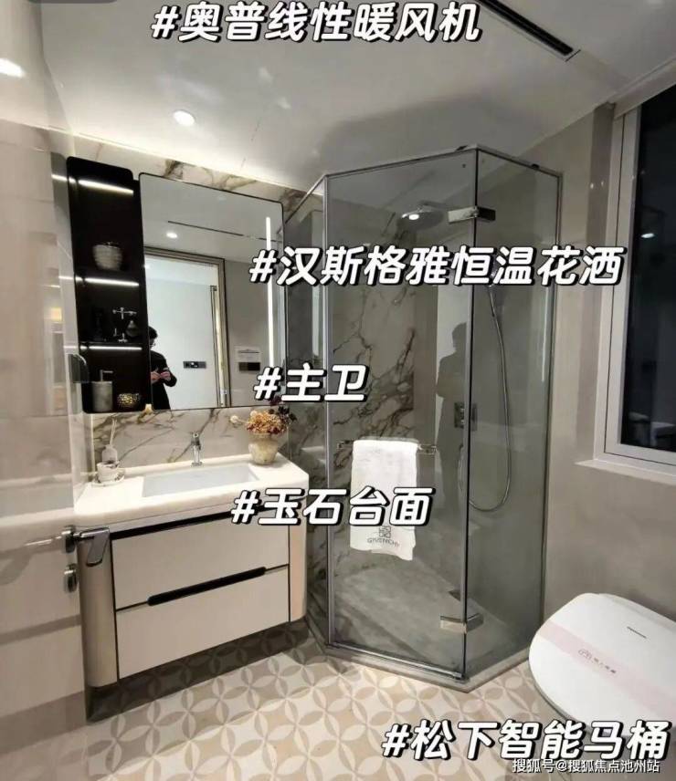 三大件配置东芝中央空调、菲斯曼地暖、迈迪龙新风;厨房配置方太高端款油烟机、博世燃气灶+洗碗机、唯斯特姆垃圾处理器+3M末端净水;卫生间使用唯宝台盆、松下马桶、汉斯格雅花洒、主卧美妆冰箱...