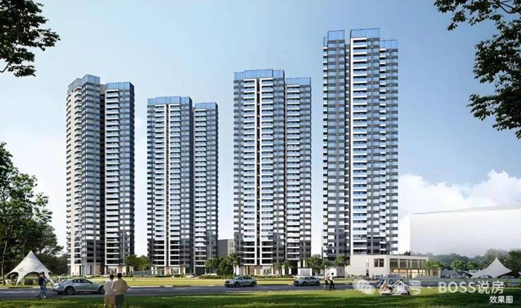 项目主要由4栋31-32层高的高层组成,采用环抱式的布局,每栋楼都是楼王,同时使得花园空间连成一片,保证了业主活动空间。