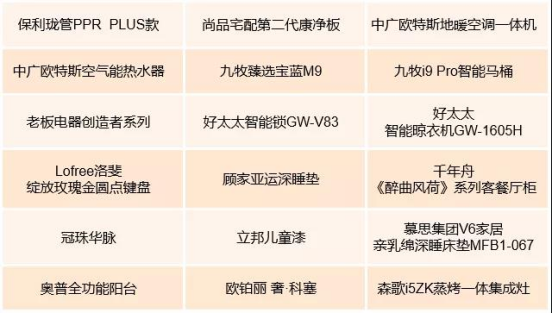 「2021年度家居行业较具价值新国货品牌」先锋品牌为九牧、奥田、中广欧特斯、冠珠瓷砖、双虎家居、好太太。