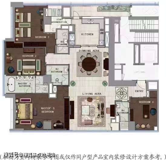 样板房户型:4单元1102,300方,4+1房,带阳台,户型方正,南北通透,带软装
