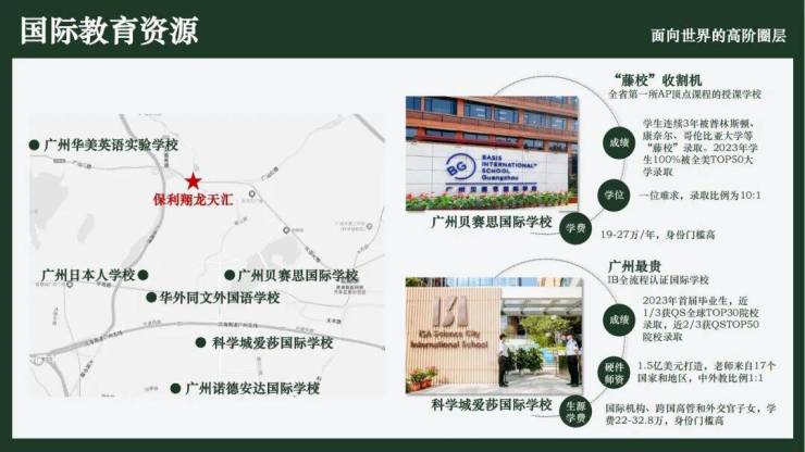 中小学:周边1公里内环绕黄埔军校中小学(广大附中管理)、科学城实验小学(原黄陂小学),初中临近117中学(拟优化为完全中学);需注意中小学学位按教育局划片分配,需摇号入学,存在不确定性。