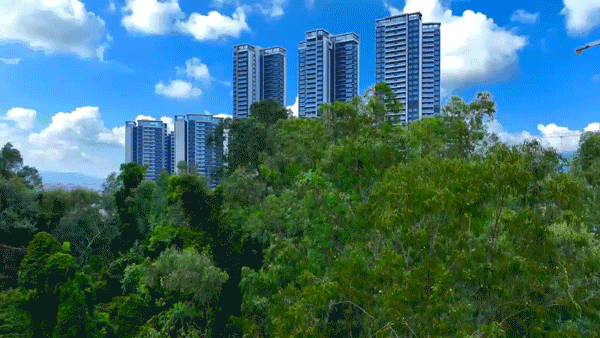 项目采用了环抱式高层布局,围绕中心园林保证每一户的视野和日照光线,后排楼栋南向可望河景+山景。